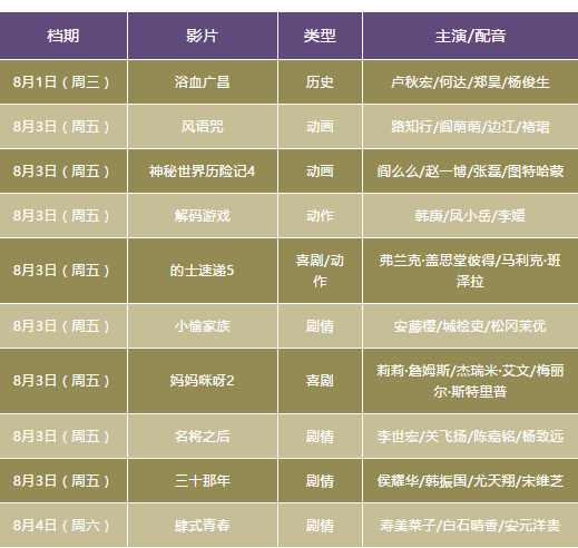 7月30日-8月5日新片
