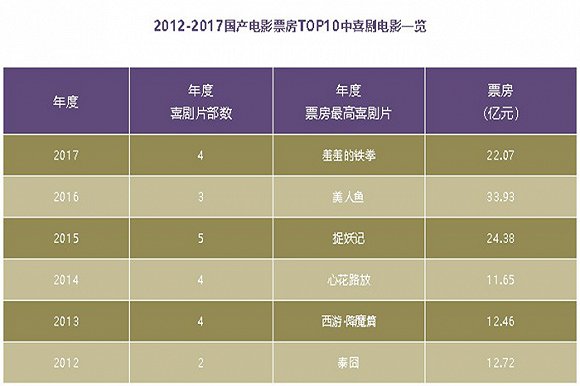 据不完全统计,2000年至今共上映喜剧电影600多部,其中票房超过100万的喜剧电影350部左右,2012-2016连续五年间,国产片票房冠军均由喜剧电影摘得,喜剧单片票房纪录已从世纪初的3000余万迅速攀升至33亿多元,实现了100倍的增长。