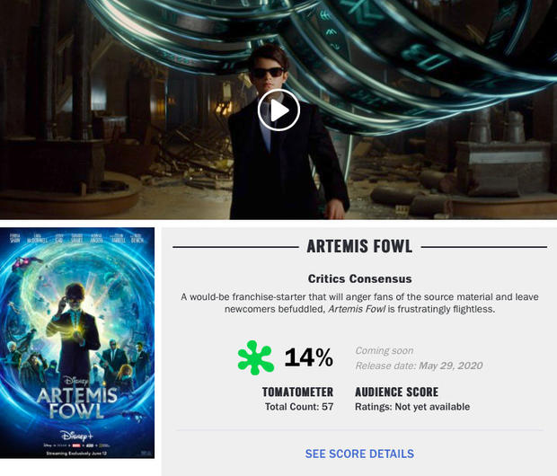 迪士尼奇幻片《阿特米斯的奇幻历险》媒体口碑解禁,在烂番茄获得57条媒体评论后,新鲜度只有14%。
