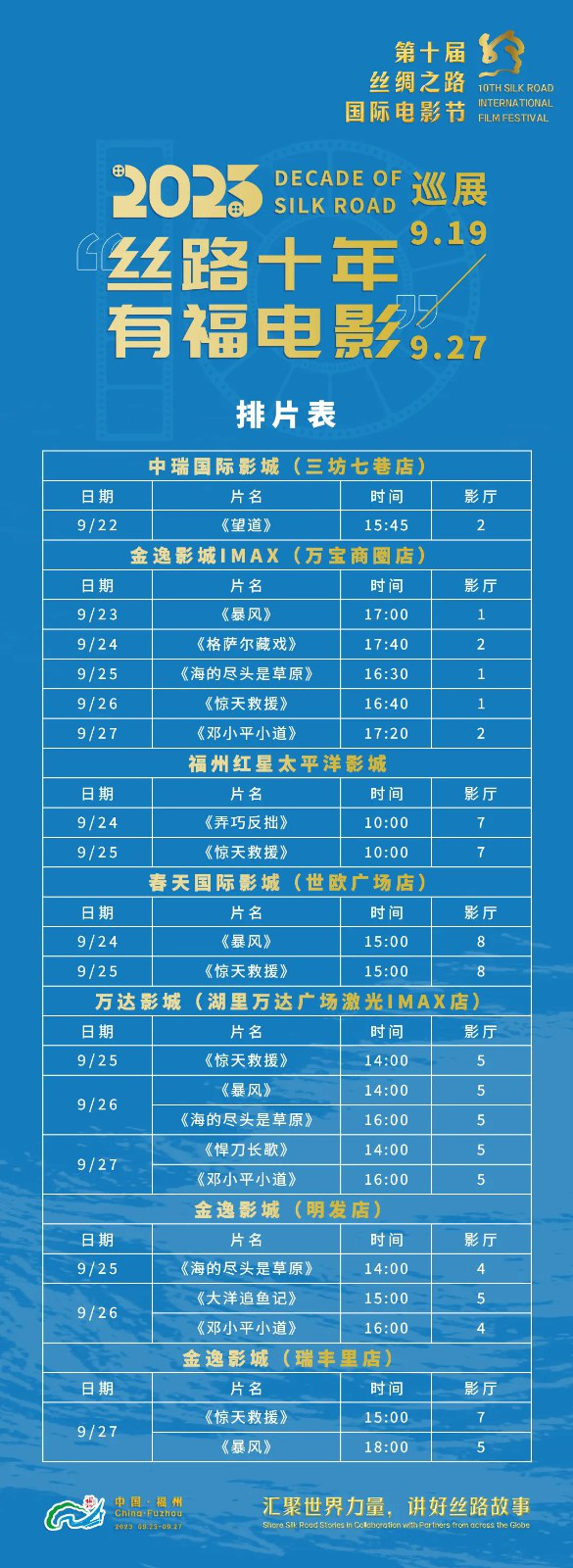 这个秋天,让我们在光影世界里与热爱撞个满怀!2023年9月23日至9月27日,第十届丝绸之路国际电影节“丝路十年·有福电影”巡展,又一波经典影片来袭!