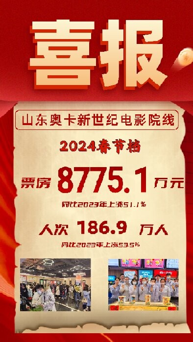 山东奥卡新世纪电影院线2024年春节档票房创新高!