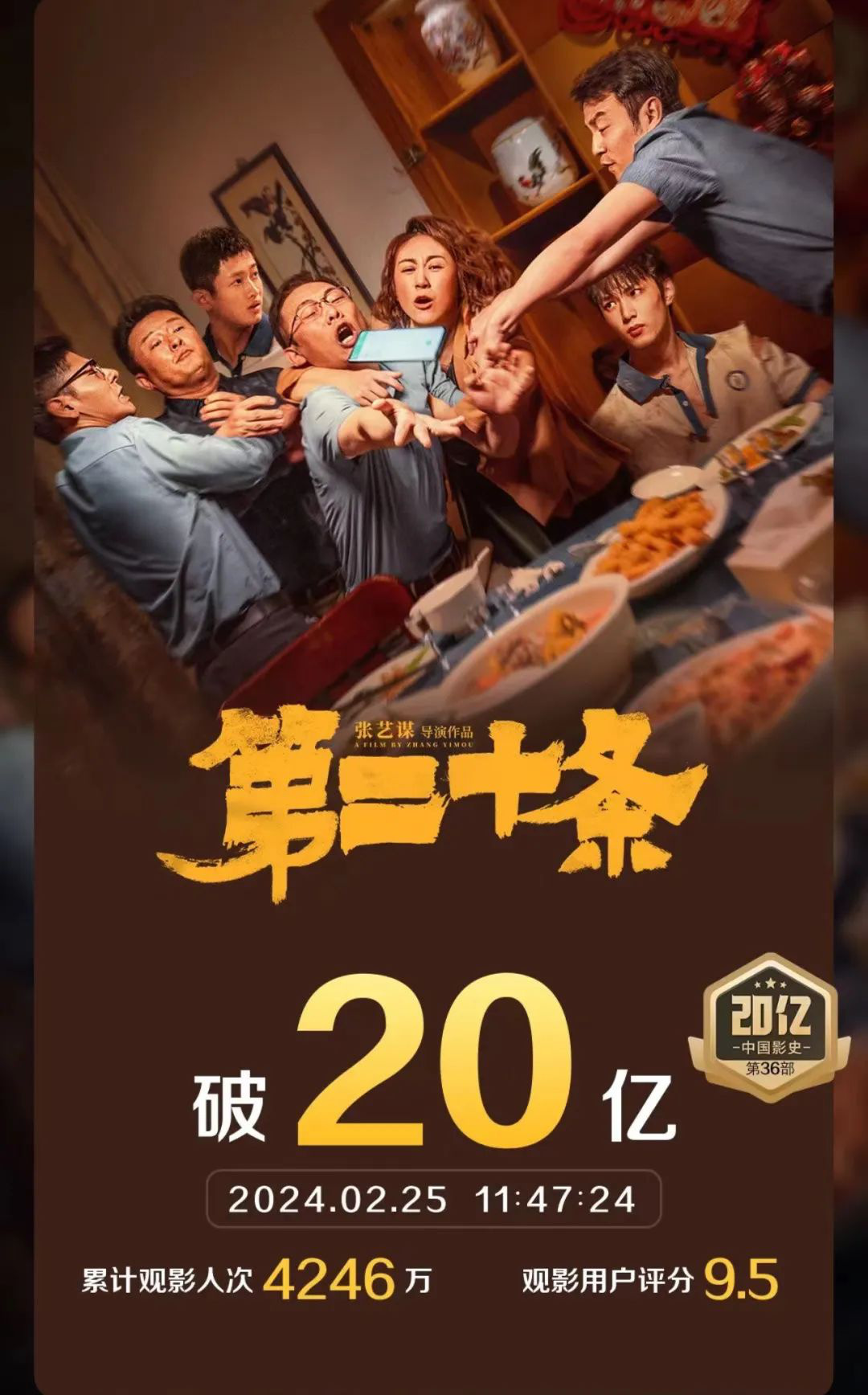 张艺谋导演电影《第二十条》没有随着春节档的落幕而逐渐退去热度,反而逆势上扬,成为档期后整个市场的最大黑马。