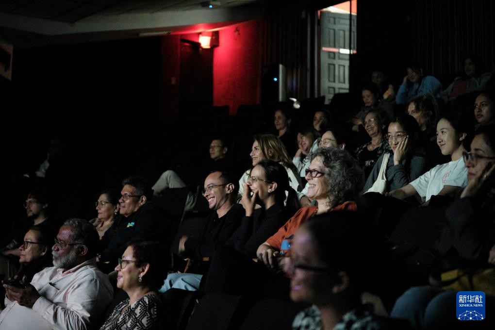 10月20日,在巴拿马首都巴拿马城,观众观看影片《热辣滚烫》。新华社记者 许咏政 摄
