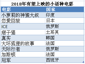 可以说,中国电影市场引进的电影类型不再局限于美国一个区域,也不再局限于大片这种单一品类,得到了极大的拓展。据舆情官统计,2018年预计上映的小语种电影较去年相比,数量上大大提升,影迷们或可在电影院观看越来越多,来自日韩、拉美、印度的优秀电影。