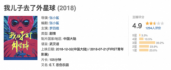 《我儿子去了外星球》在豆瓣上获得了不及格的分数