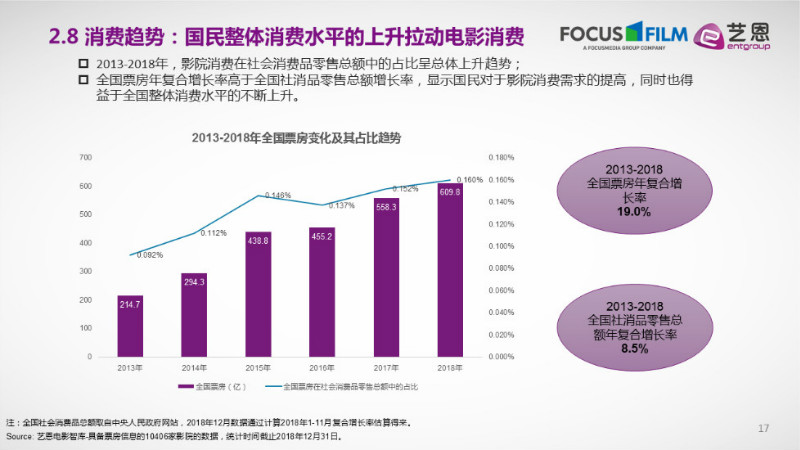 在国民整体消费水平提高的大环境下,中国电影票房市场增长总体上比较稳健。观影人次增加是保持增长的主要原因。从类型上来看,今年国产电影票房增长速度较为迅猛。