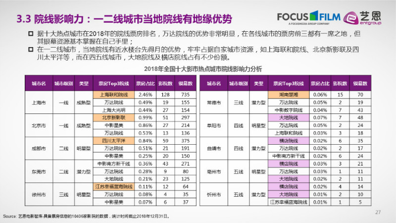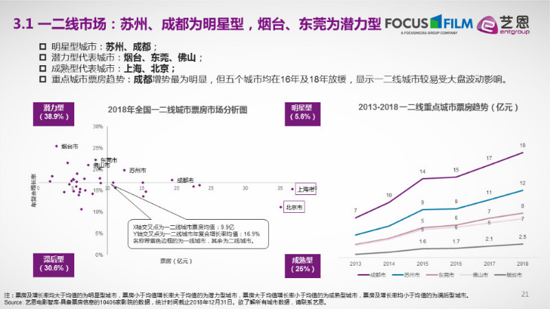2019年伊始,分众晶视联合艺恩数据正式发布《2018年中国电影市场城市热度趋势报告》,报告盘点分析2018年中国各线城市的电影市场情况,带来十大最新趋势洞察,旨在为中国电影的未来发展,提供一个有益的视角和启示。(横屏阅读,效果更佳)