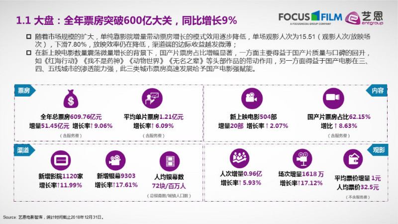 2018年注定是中国电影产业发展历史中值得被关注的一年,一方面全国票房突破600亿大关,另一方面从2014年开始的国内电影“票补史”也在2018年最终画上了句号。在市场总量稳定增长的背景下,寻求市场结构上的突破异常关键。