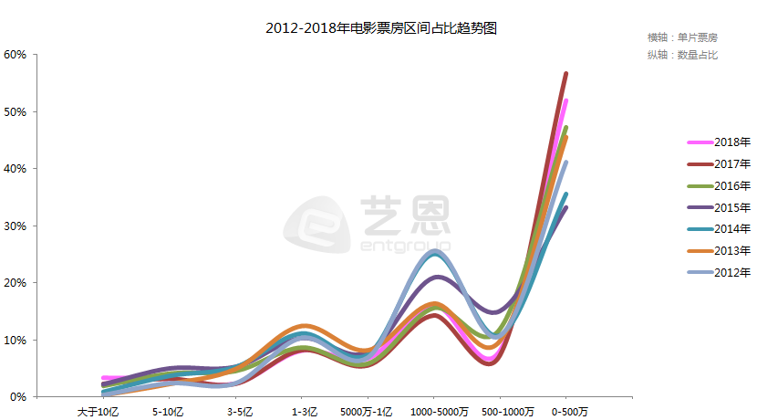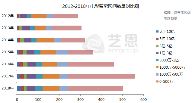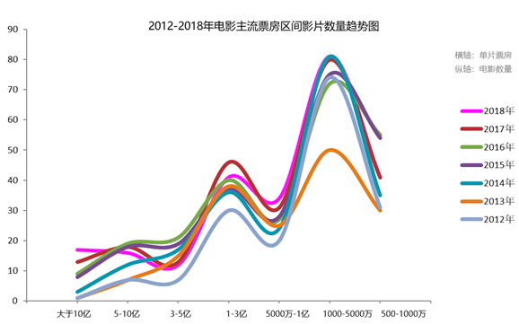 从这七年的经验来看,票房的快速增长有赖于中段票房电影数量的增加,头部电影增加对总量影响很小,比如2017年,虽然10亿以上票房高达17部,史上最高,但是依然没有改变增速不到两位数的事实。指望票房500万以下电影就更不靠谱了。