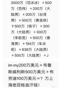 2018年比较有代表性的大概是最后消匿无声的《大轰炸》,下图是崔永元自己发出来的电影的片酬,而且据说当时范冰冰只拍摄4天,纯属客串。像刘烨、谢霆锋等被曝光的片酬也不敌配角的一半。如果按照当时片方所说的3.5亿投资,那么无疑演员片酬就占据了近三分之一的比重,当然这部电影原本显示出来的表象“水更深”。
