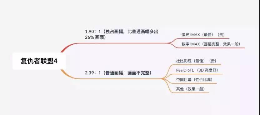 本次《复联4》看起来IMAX贡献巨大,主要是因为IMAX在中国的认知度最高,且中国内地的IMAX银幕数量已经是全球领先。中国巨幕发展速度虽然很快,但它是用略“平价”的方式去冲击市场,更多是在二三四线来布局。这从侧面透露出观众对影厅特效厅的认知模糊和选择受限。