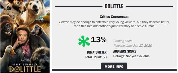 06. 唐尼新片《多力特》烂番茄新鲜度13%