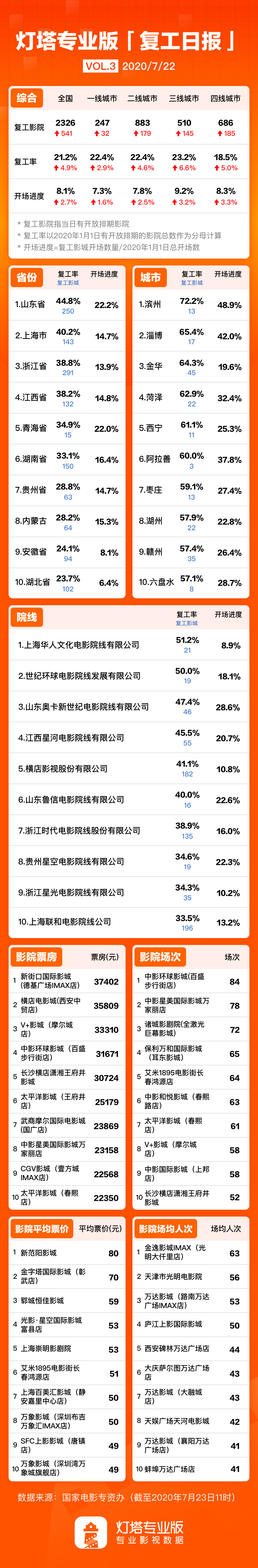国内电影院复工次日全国票房上涨30% 本周末多部好莱坞片上映 北京影院复工