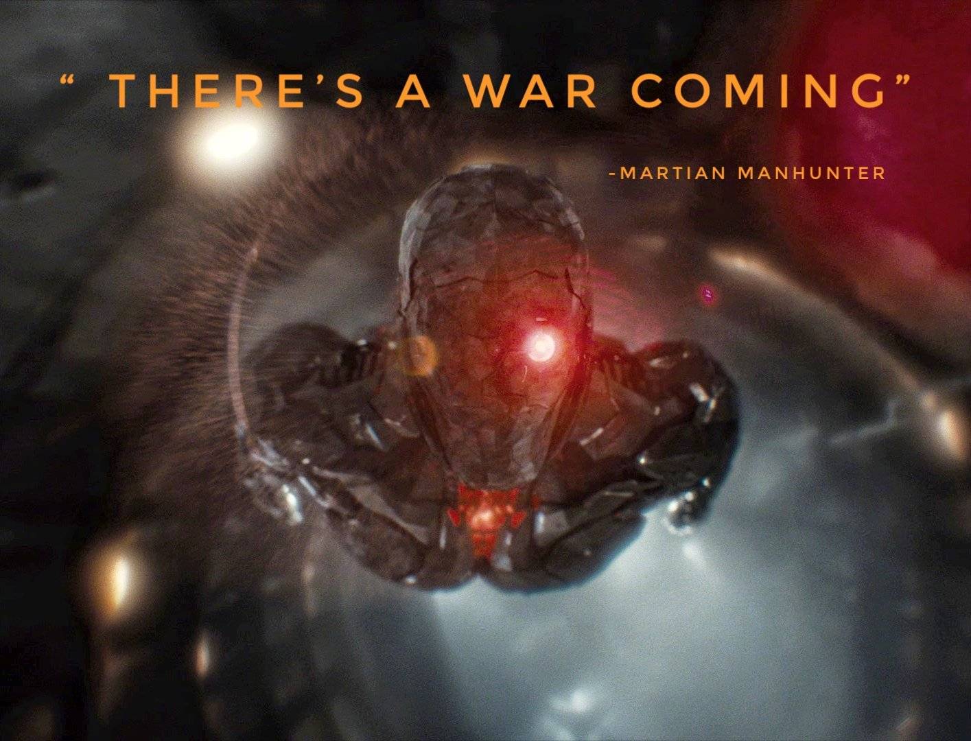 扎克·施奈德今日分享了导剪版《正义联盟》的最新照,钢骨现身,剧照上写着“火星猎人”的台词——“战争即将来临”(There’s a war coming)。火星猎人本是DCEU七位“正联”成员中的一份子,这一角色并未在院线版《正联》中出现。此前扎导在《蝙蝠侠大战超人:正义黎明》的导演评论音轨中提到,Swanwick(哈利·莱尼克斯饰)将军就是“火星猎人”,他知道超人的真实身份。