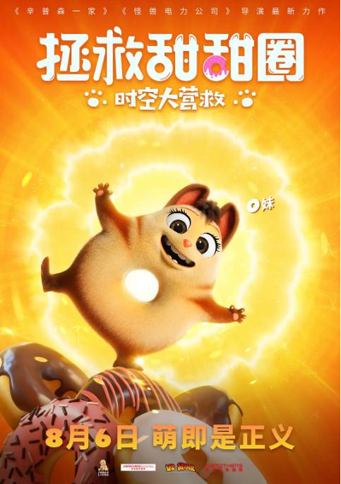 电影《拯救甜甜圈:时空大营救》讲述了一对形似甜甜圈的小动物兄妹因为一场意外穿越进现代上海,在“时间花”的帮助下,兄妹俩联手小白狗和灭绝动物宝宝团,试图拯救自己濒临灭绝的族群菲拉萌的故事。作为暑期首选合家欢动画电影,在《拯救甜甜圈:时空大营救》中,我们不仅能看到萌化人心的角色形象,还能体验到丰富的喜剧元素与治愈的情感力量。由于奇特的“甜甜圈”造型设定,不同“甜甜圈”之间、“甜甜圈”和其他动物之间产生了奇特的化学反应,笑点不断!另一方面,随着冒险不断深入,O妹和爱德之间的兄妹情、两兄妹与其他伙伴们的友情线也逐步展开,温暖的故事治愈人心。