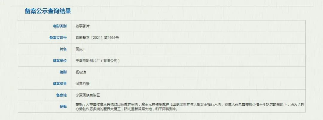 从《画皮3》的情节梗概来看,故事依然是在《画皮》系列宇宙里,保留了九霄美狐小唯这一经典角色,增加了魔界大魔王这一反派人物。