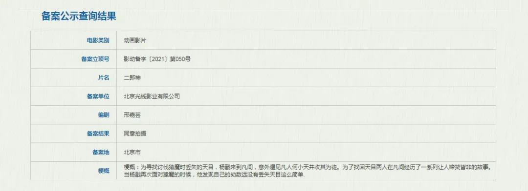 不仅追光动画瞄准“杨戬”,光线影业也要做《二郎神》。