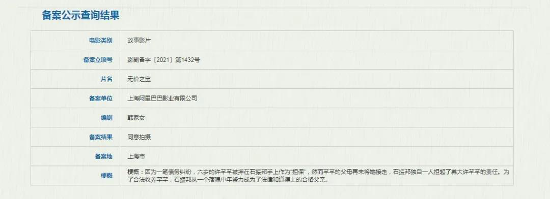 据悉,《无价之宝》导演为张大鹏,他执导的广告短片《啥是佩奇》曾火爆全网,如今转战大银幕,由他编剧的另一部电影《恋爱,请多指教》也已经成功立项。