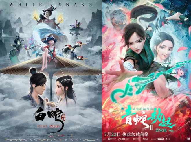 《白蛇:缘起》选择打通了中国有关蛇的文学记载,将白蛇故事和柳宗元所写的《捕蛇者说》捏合到一起,形成了新的叙事。但这样一个传说故事,几经拍摄,确实难以在短时间内再次讲出新意。因此在《白蛇:缘起》的片尾字幕中把《白蛇传》讲完后,《青蛇劫起》选择开辟了一个新的空间,从白蛇、青蛇的身份与转世上做文章。