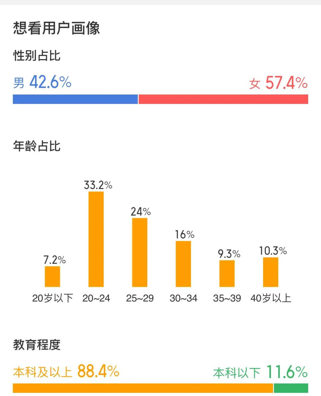 事实上,2年前上映的《白蛇:缘起》也是如此。这部影片的想看画像和《白蛇传·情》十分相似。而该片在上映后,也依靠口碑,不断逆风而上,实现一周又一周的票房突破。