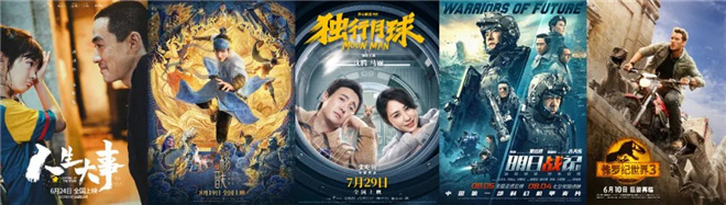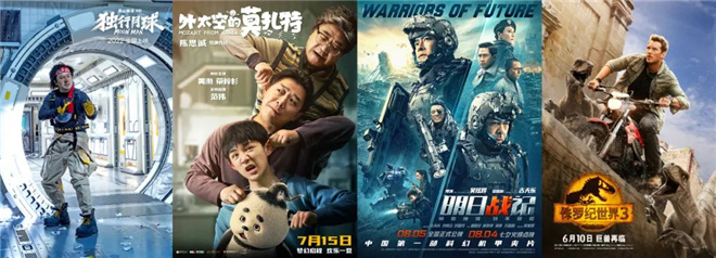 暑期档票房TOP10中,含有科幻元素影片数量达到4部,分别是《独行月球》、《明日战记》、《外太空的莫扎特》、《侏罗纪世界3》。四部影片合计票房超47.9亿元,占暑期档整体票房五成以上。