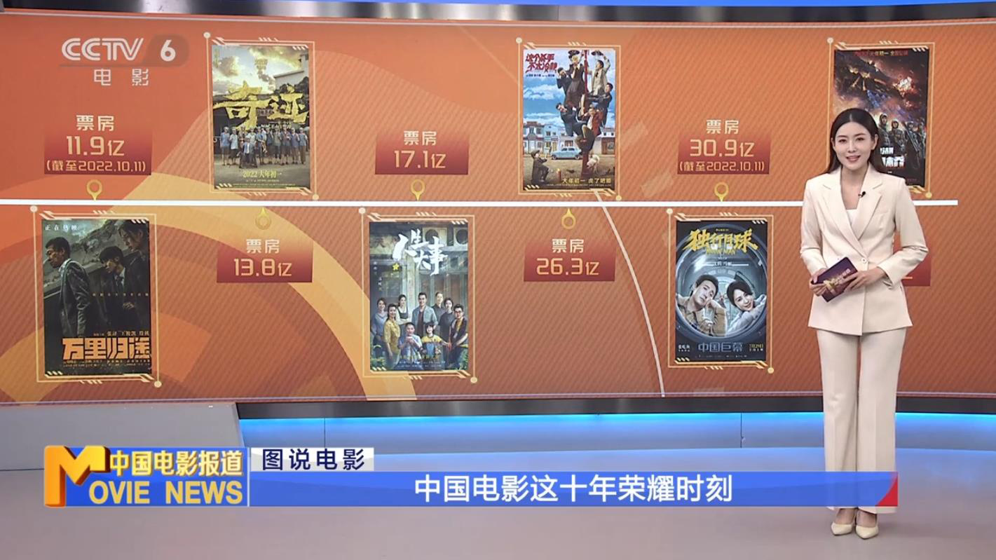 日前,电影频道中国电影报道栏目推出《中国电影这十年——图说电影》系列特别报道,带大家回顾中国电影十年间的那些荣耀时刻。