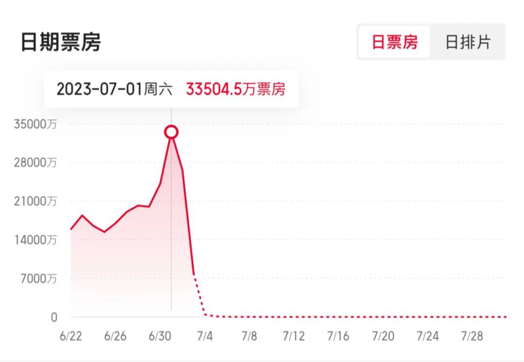 次周末同样表现抢眼,三日总票房8.42亿,远超首周末(端午假期三天)的5.08亿,更是于7月1日(周六)创造了单日最高票房纪录3.35亿,彼时距上映首日已过去9天。